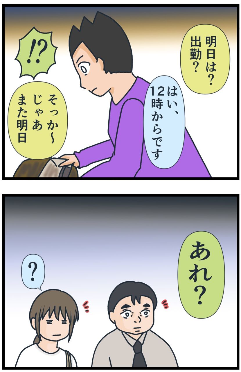 2023年10月25日 店長がぶっ飛んでいる⑬ ↓第1話です↓ ↓昨日の記事です↓ ※3割ぐらいはフィクションですお酒飲める人が多い方がいいと思ったのでなんとなく誘ってみました(ウチはあまり飲みません)明日も仕事だろうから仕方ない佐分さんは家が遠かったので誘わないです・・・どうかしたのか???それって思った以上の大事件なんですけど…(´Д` )こうして、事件(?)の口火が切られたのであった↓続きです↓ ↓だいぶショックでした(全43話+番外2話)↓ 「店長がぶっ飛んでいる」カテゴリの最新記事 < 前の記事次の記事 > コメント コメントフォーム 名前 コメント 記事の評価 リセット リセット 顔 星 情報を記憶 コメントを投稿する